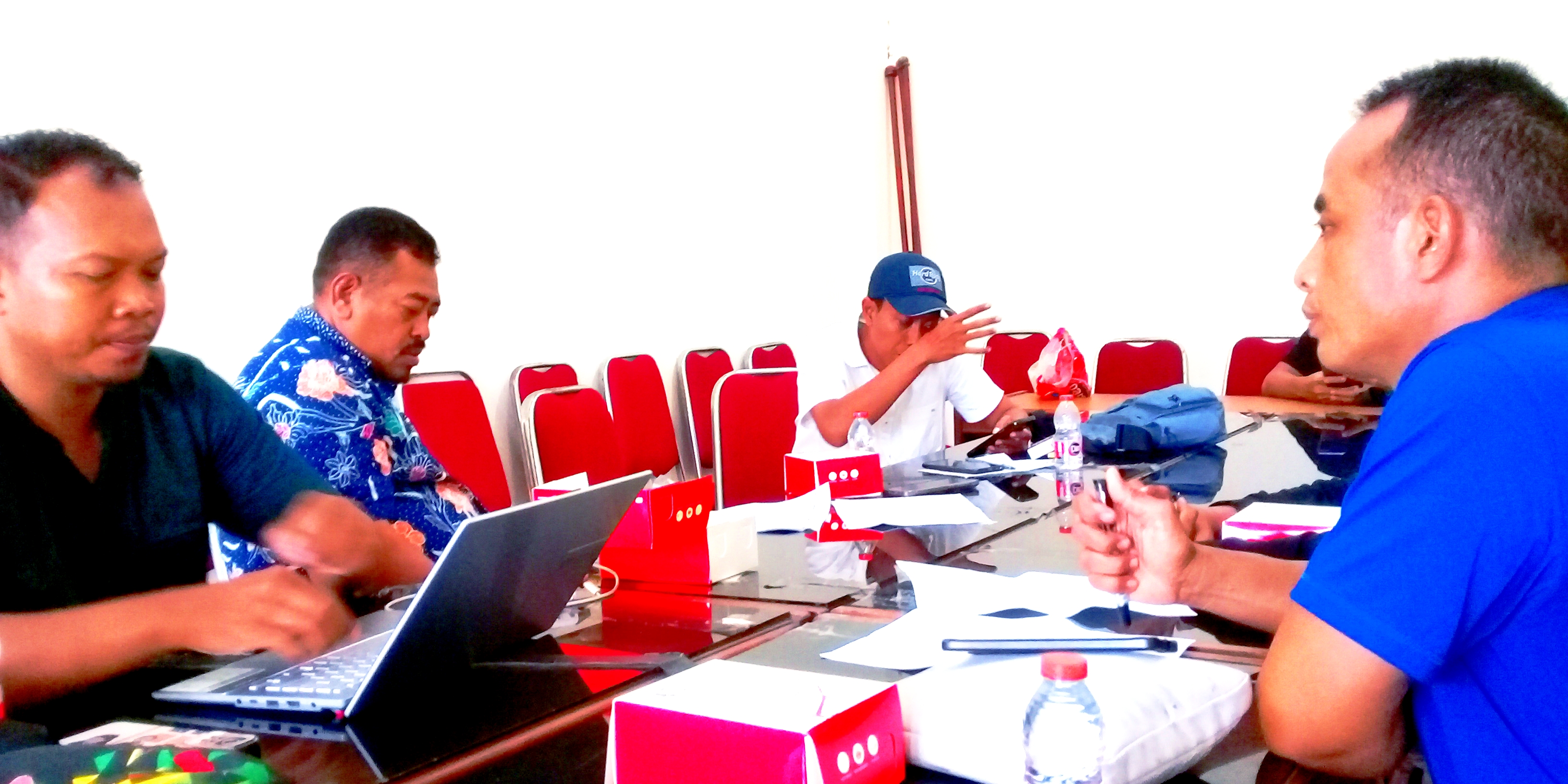 Teks : Ketua Pengkab Cabor Bina Raga Sidoarjo, Barkah, bersama tim , menyampaikan kepada Bidang Binpres KONI Sidoarjo, langkah-langkah untuk menghadapi event