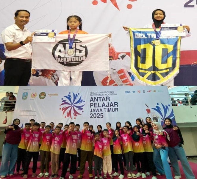 KONI SIDOARJO- Atlet Taekwondo Sidoarjo berhasil memborong medali pada ajang Kejurprov Taekwondo Antar Pelajar Jatim 2025 yang digelar di Kota Malang kemarin. Terdapat 306 atlet Taekwondo dari 18 Dojong Taekwondo Sidoarjo yang ikut dalam even yang digelar selama empat hari tersebut. Salah satunya atlet dari Dojang Delta Club Sidoarjo yang berhasil membawa 23 medali. Althaf Bramasta El Bachri yang tergabung dalam Dojang Delta Club Sidoarjo menjadi salah satu atlet peraih emas dalam event itu.
