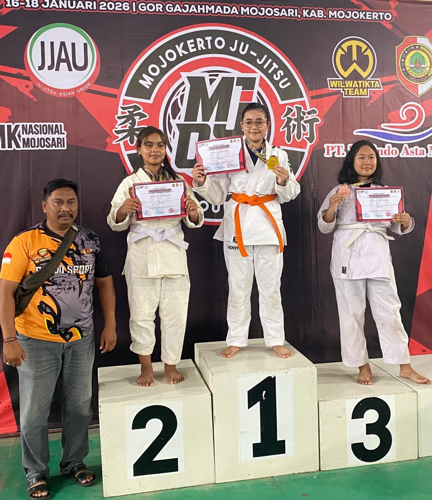 KONI SIDOARJO- Sebanyak 5 medali emas, 12 medali perak, dan 9 medali perunggu, diraih para atlet Jujitsu Kabupaten Sidoarjo, yang telah bertarung dalam Mojokerto Jujitsu Open Tournamen (MJOT) , yang digelar pada 16-18 Januari 2026, di GOR Gajah Mada, Kabupaten Mojokerto.