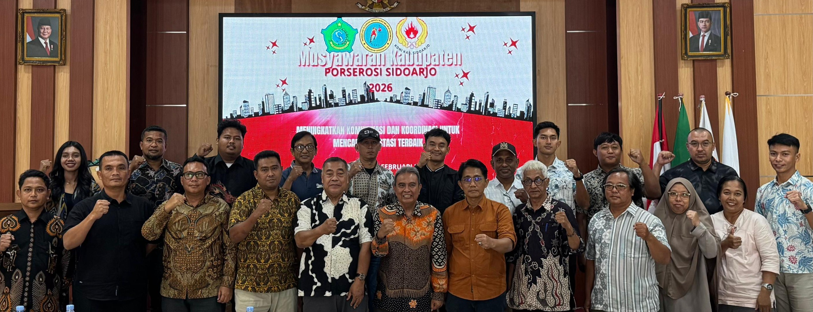 Teks : Para peserta Muskab Porserosi Sidoarjo 2026 foto bersama -sama, usai acara Muskab.(*)